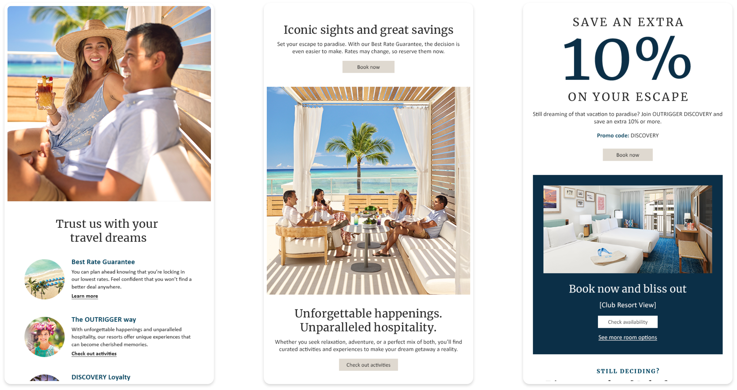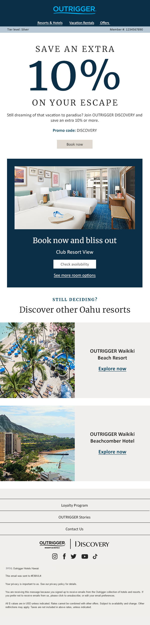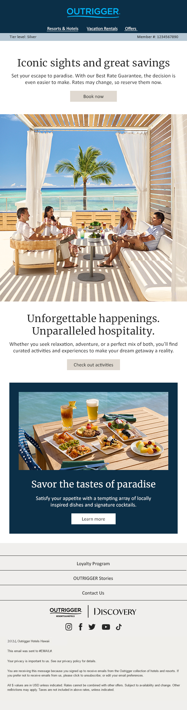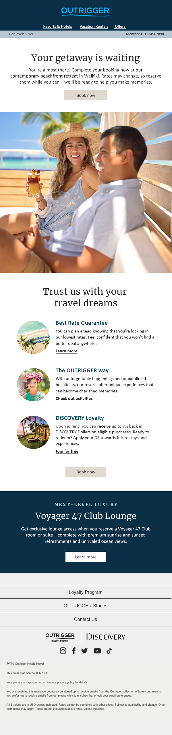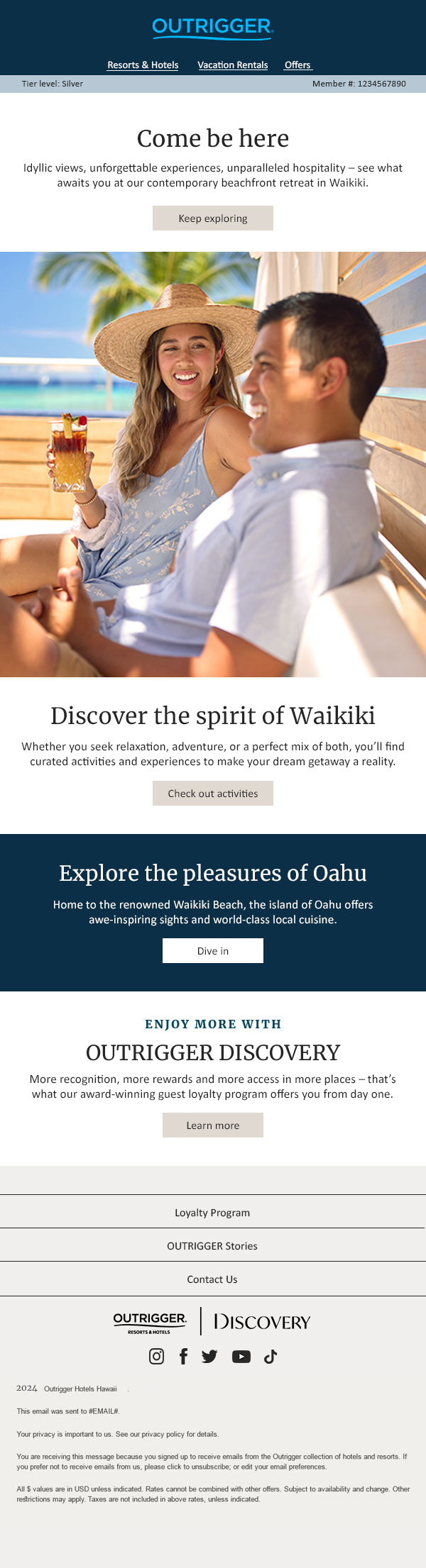 The overall dynamic program leveraged OUTRIGGER’s responsive email design system for production efficiency and was enhanced with new modules and dynamic guardrails. This ensured the program created a fresh and compelling experience for the customer while also keeping the visual integrity of the OUTRIGGER brand.